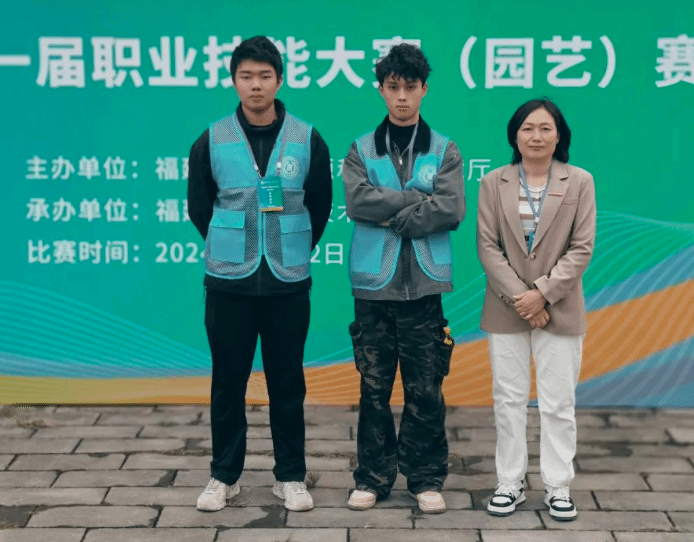 园艺赛项金奖获得者沈树强和林俊辉和指导老师