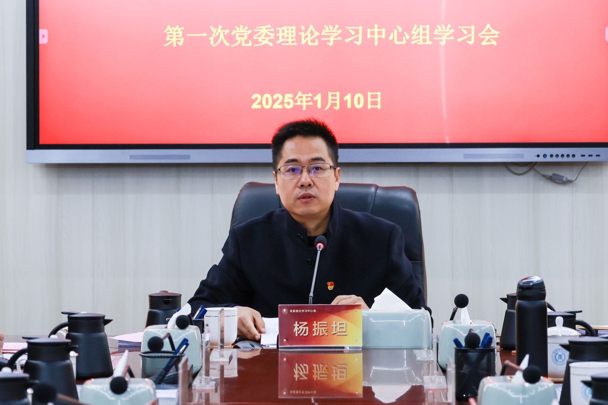 2025年1月10日,学院党委书记杨振坦主持召开第一次理论学习中心组学习会,开展习近平总书记重要讲话重要指示批示精神专题学习。院党委领导班子成员、中专部主要负责人;宣传部、纪委办负责人;各二级党组织书记参加了会议。